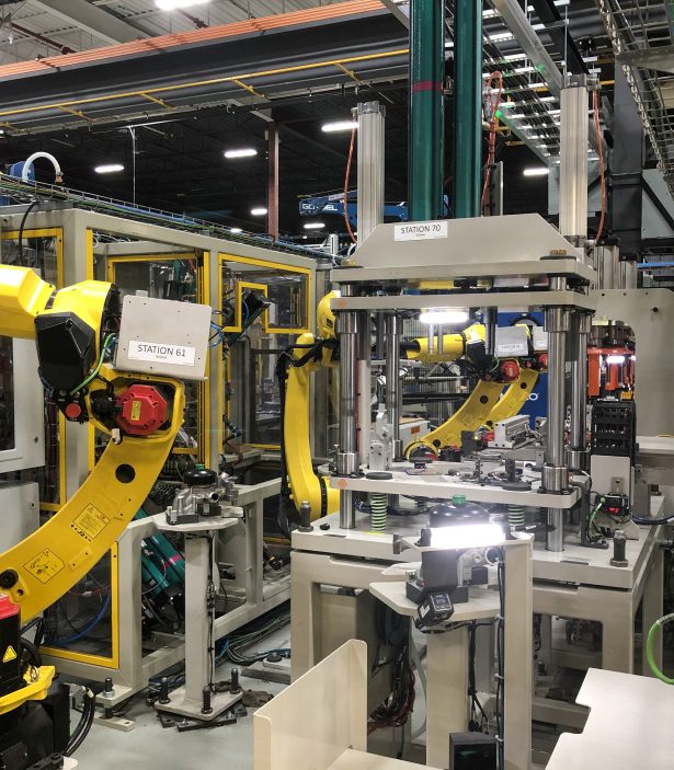 Les exigences élevées de l'industrie automobile demandent à ce que les pièces soient contrôlées à plusieurs étapes. Voici un projet réalisé sur une ligne de production entièrement automatisée où nous avons conçu les équipements et intégré divers éléments de robotique industriel et collaborative, de vision artificielle en plus de procéder à l'intégration des systèmes de contrôle et de supervision de ligne.